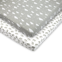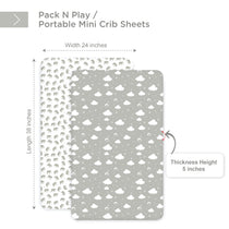 Bubo Baby Pack and Play Fitted Sheet, Portable Pack N Plays Mini Crib Sheets, 2 Pack Play Sheets, 100% Jersey Cotton Playard Sheets, Grey/White
